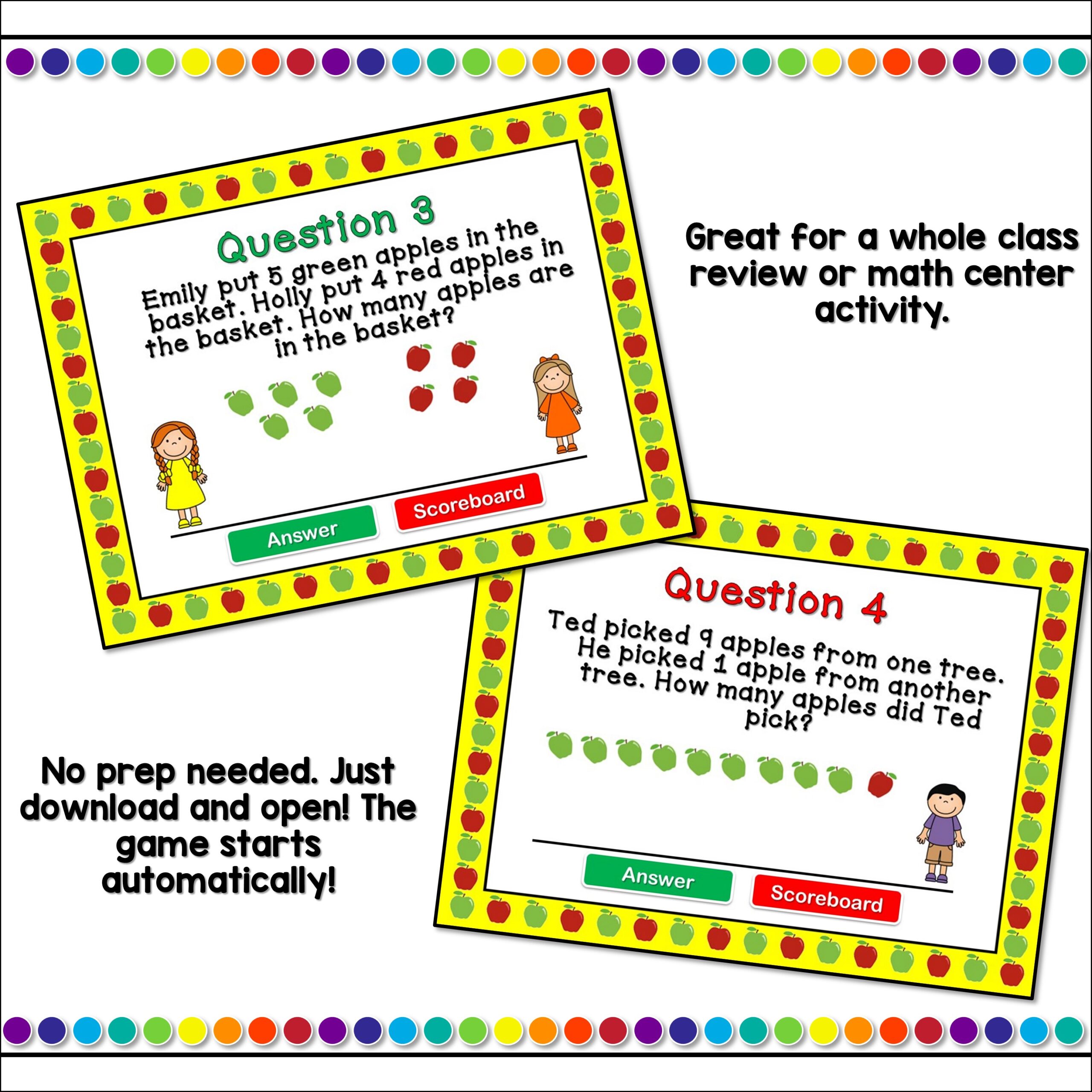 Kindergarten Addition Word Problems Teacher vs Student Powerpoint Game
