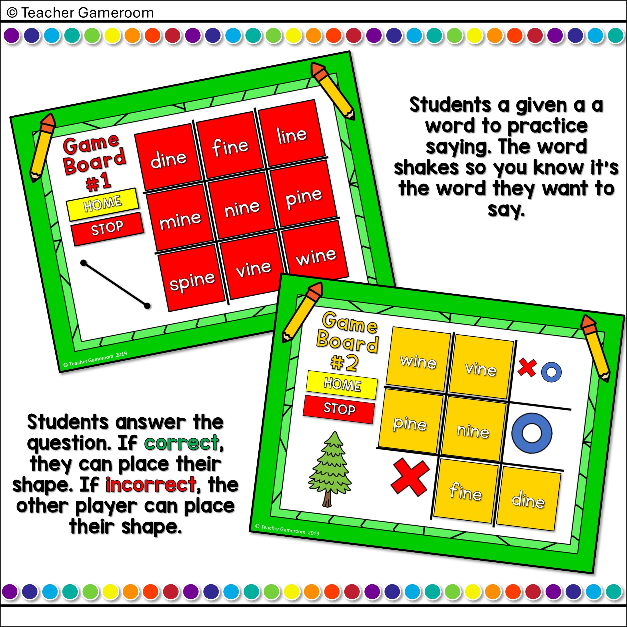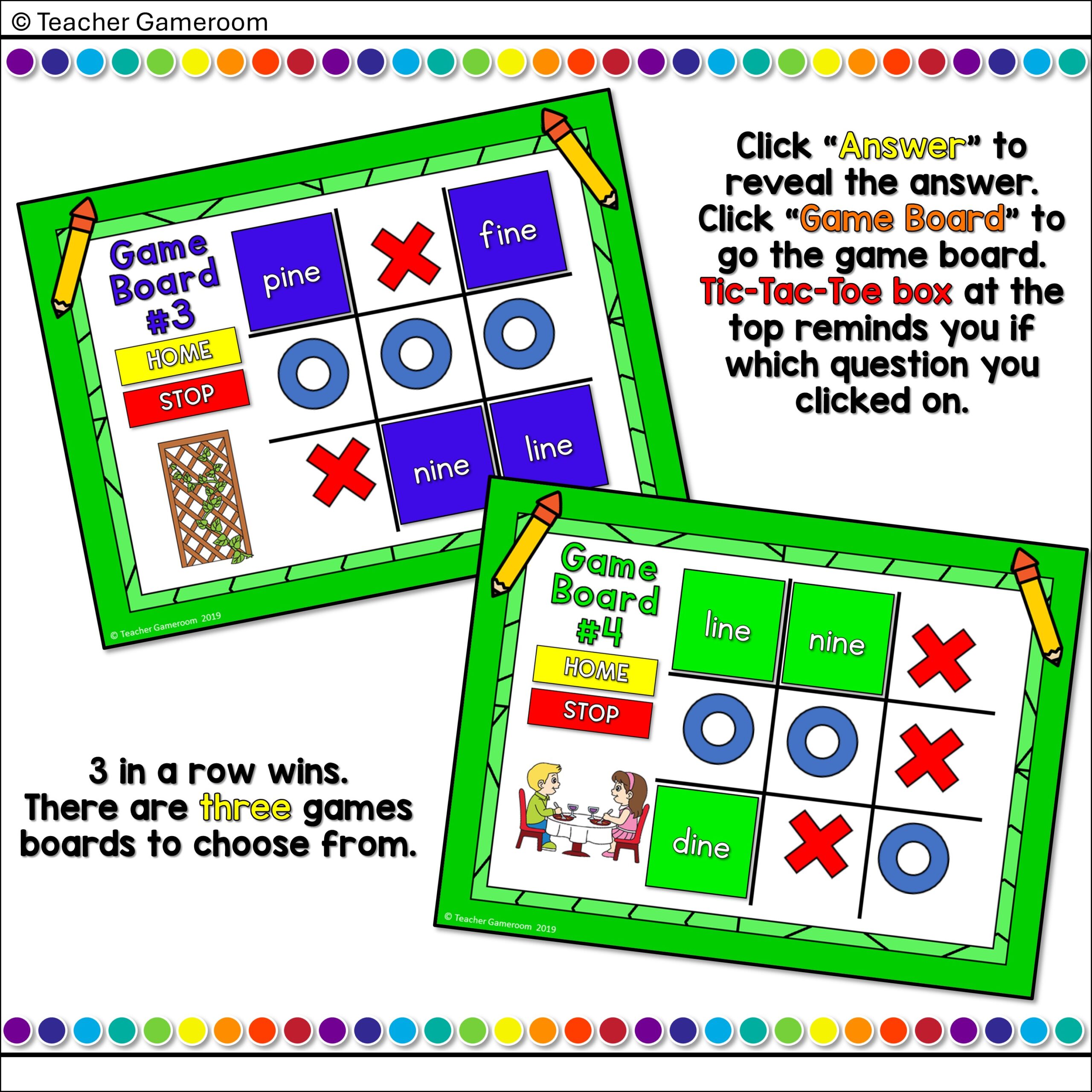 Word Families -ine Words Tic-Tac-Toe Powerpoint Game