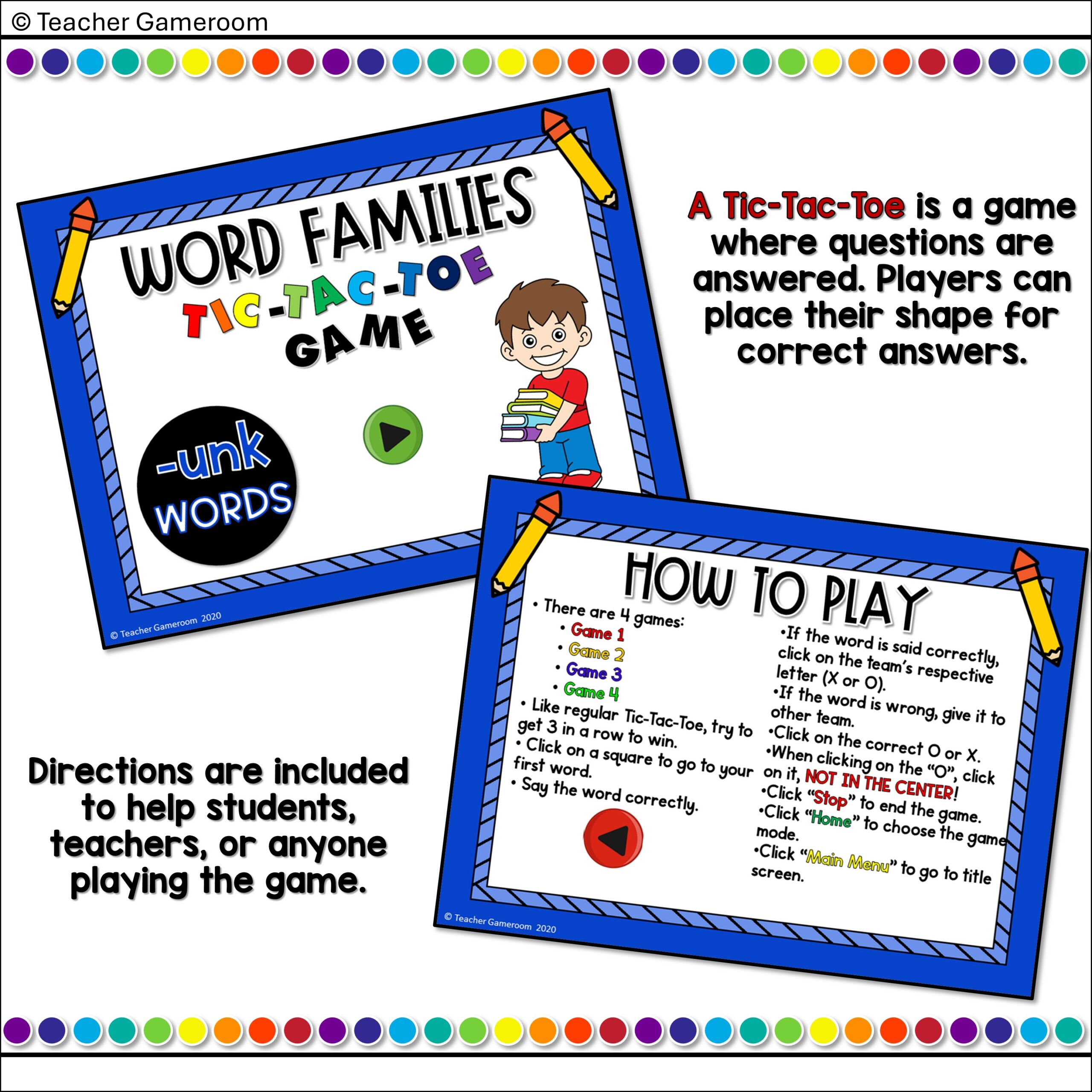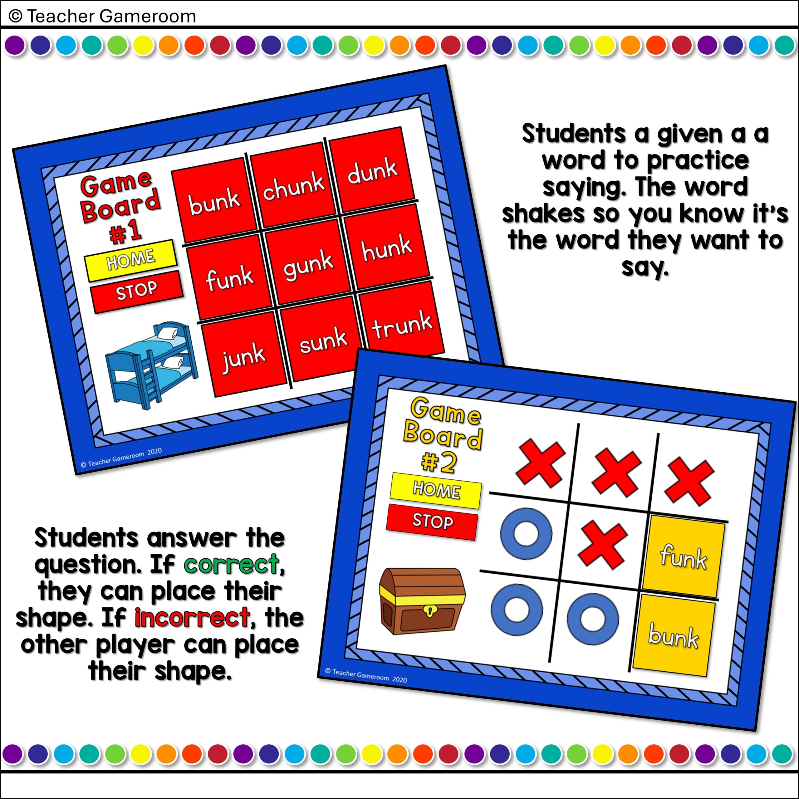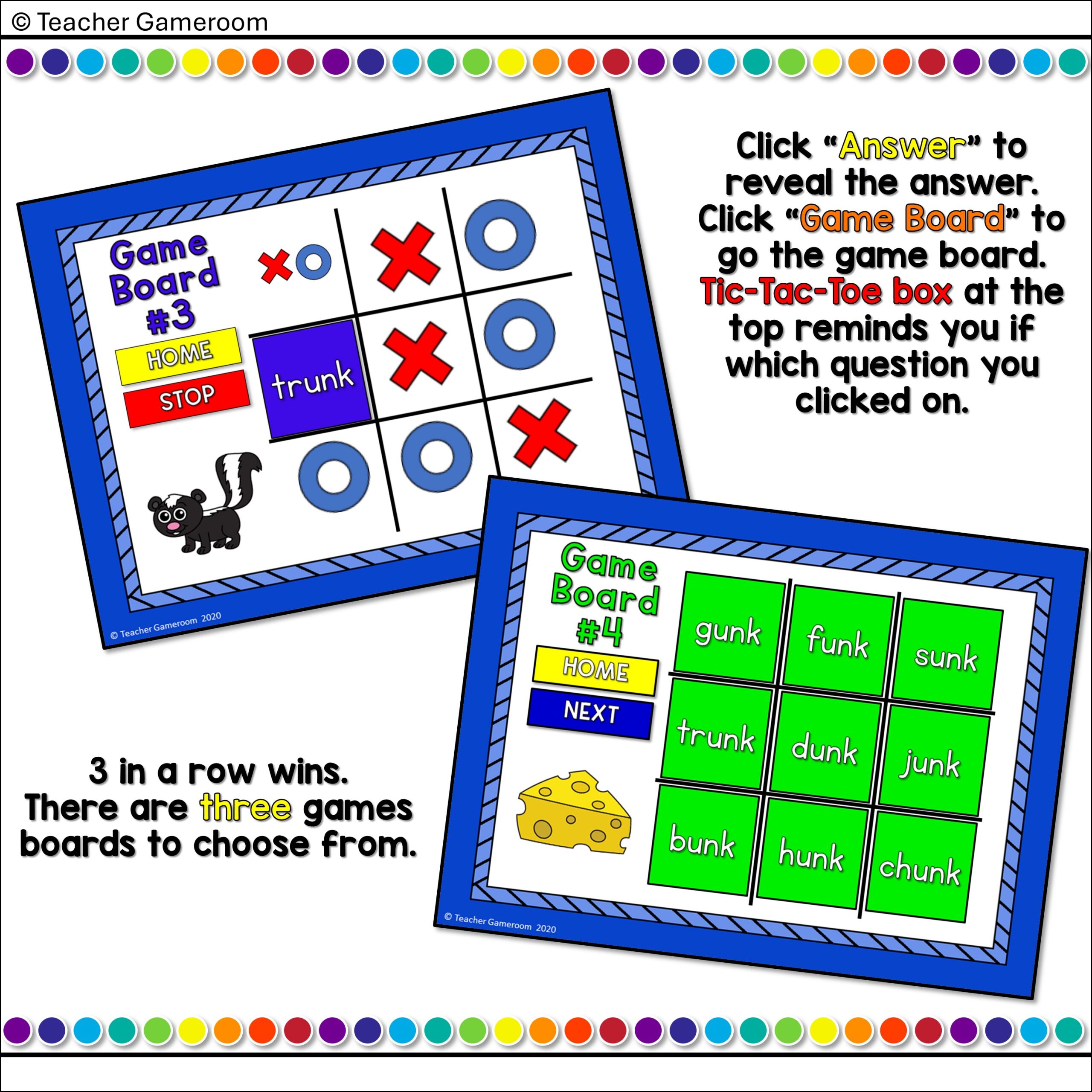 Word Families -unk Words Tic-Tac-Toe Powerpoint Game