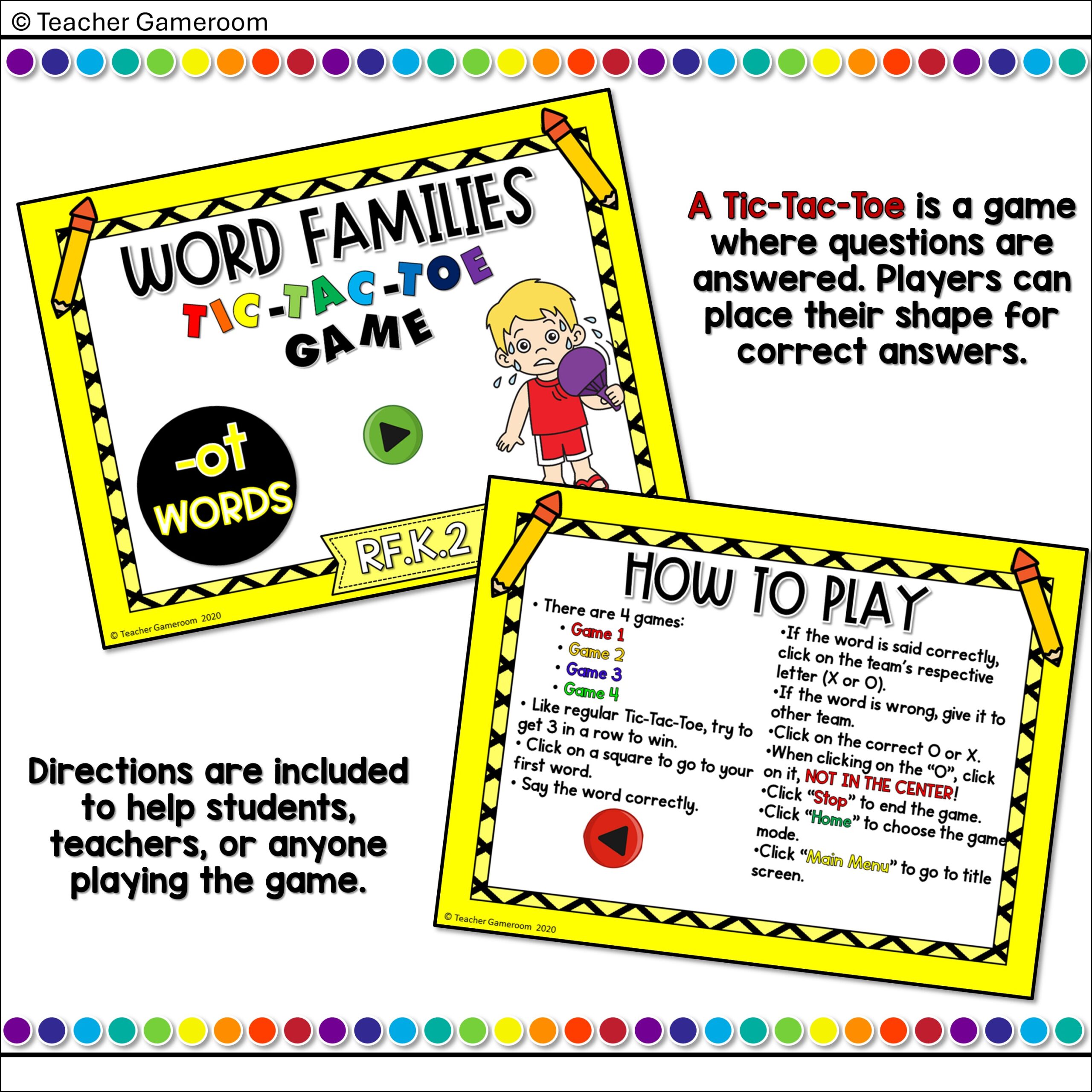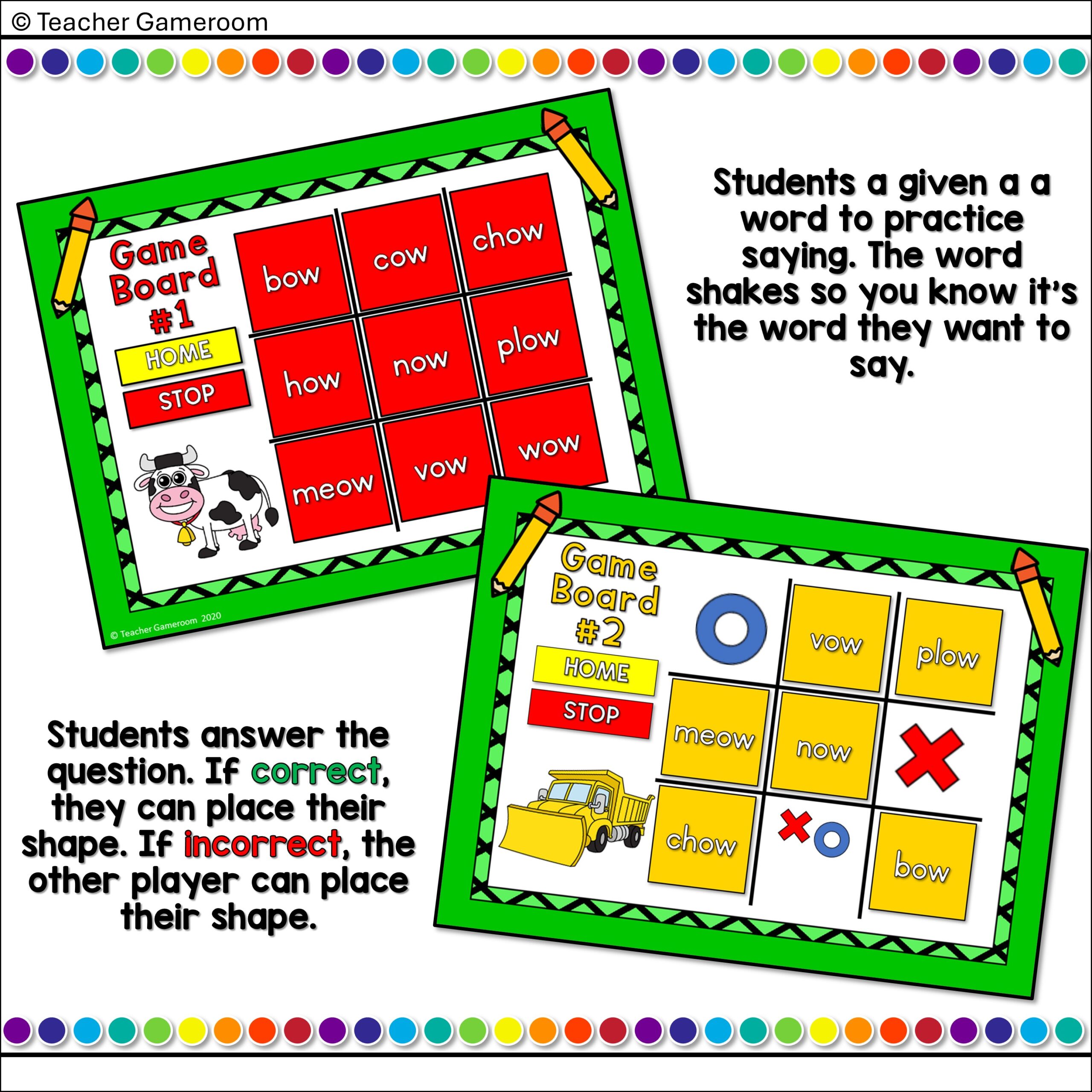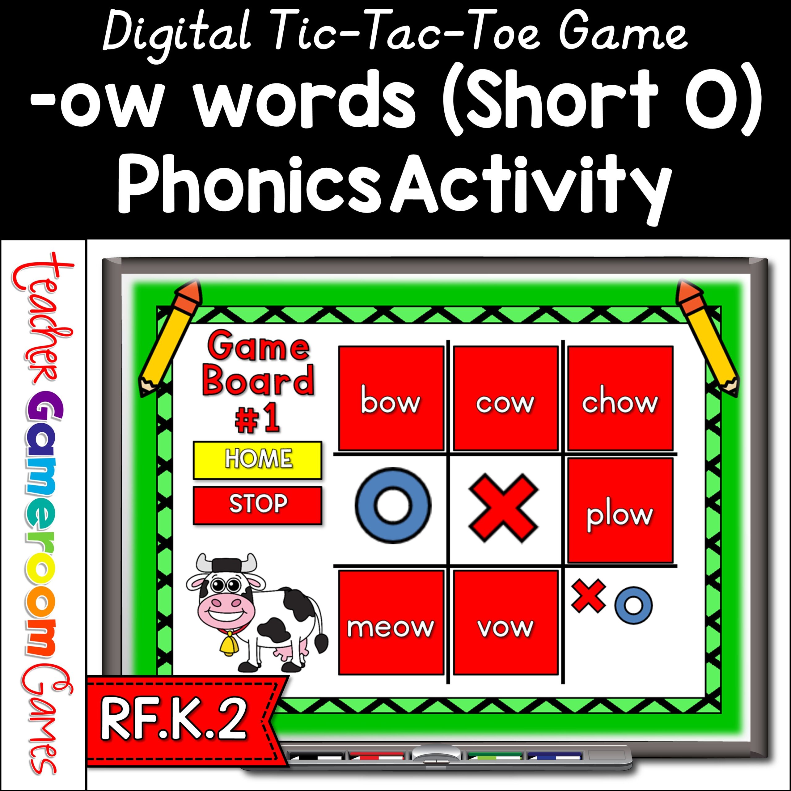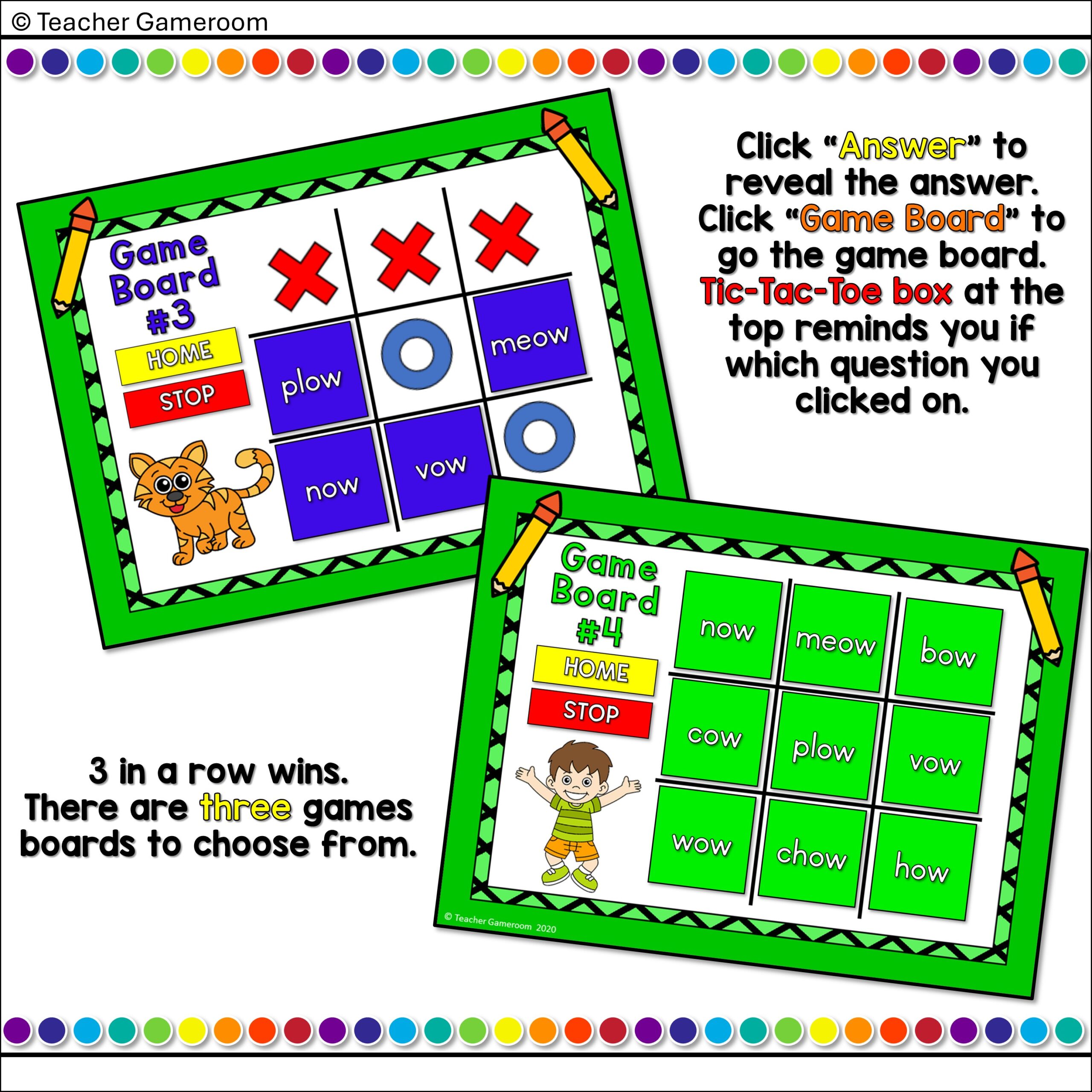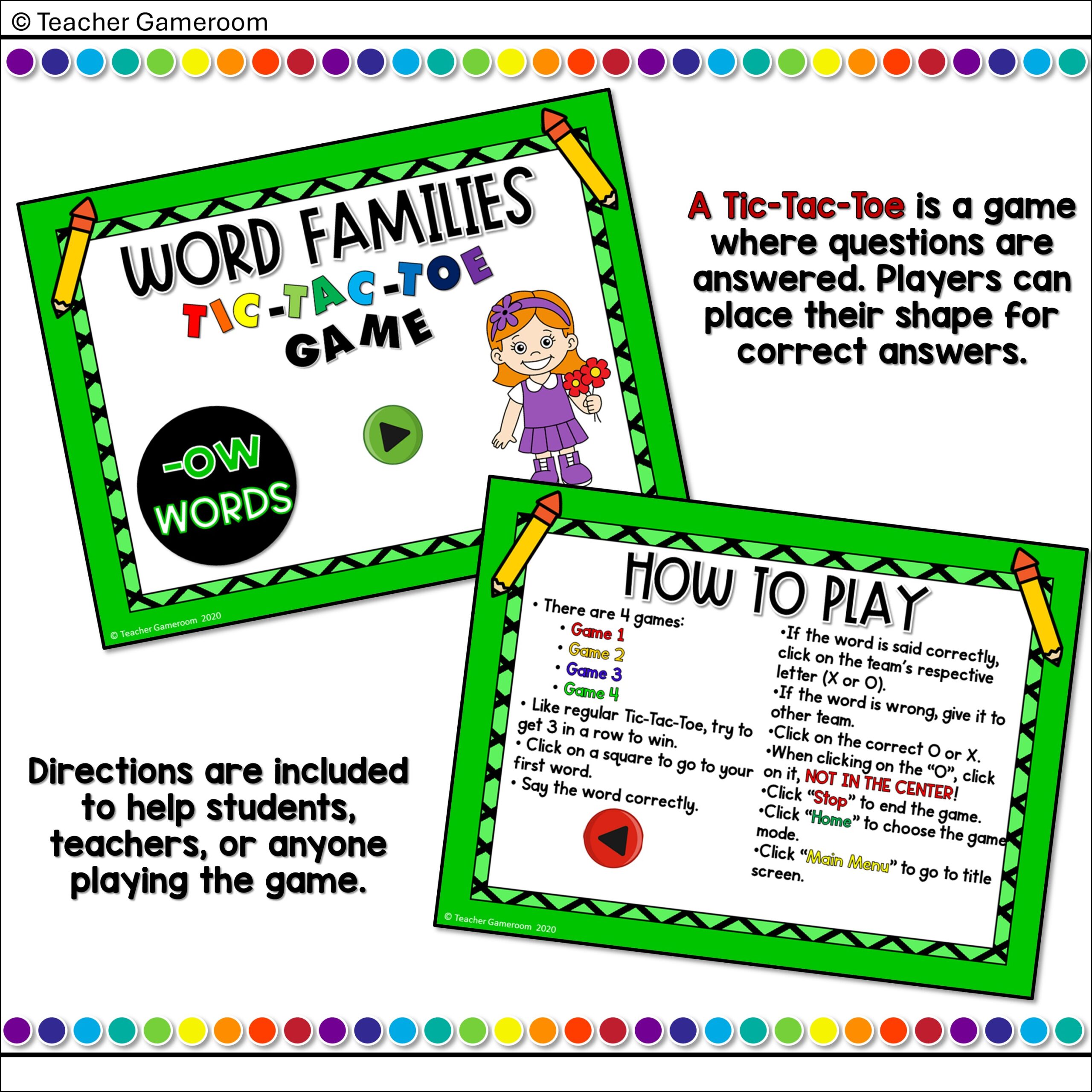 Word Families -ow (Short) Words Tic-Tac-Toe Powerpoint Game