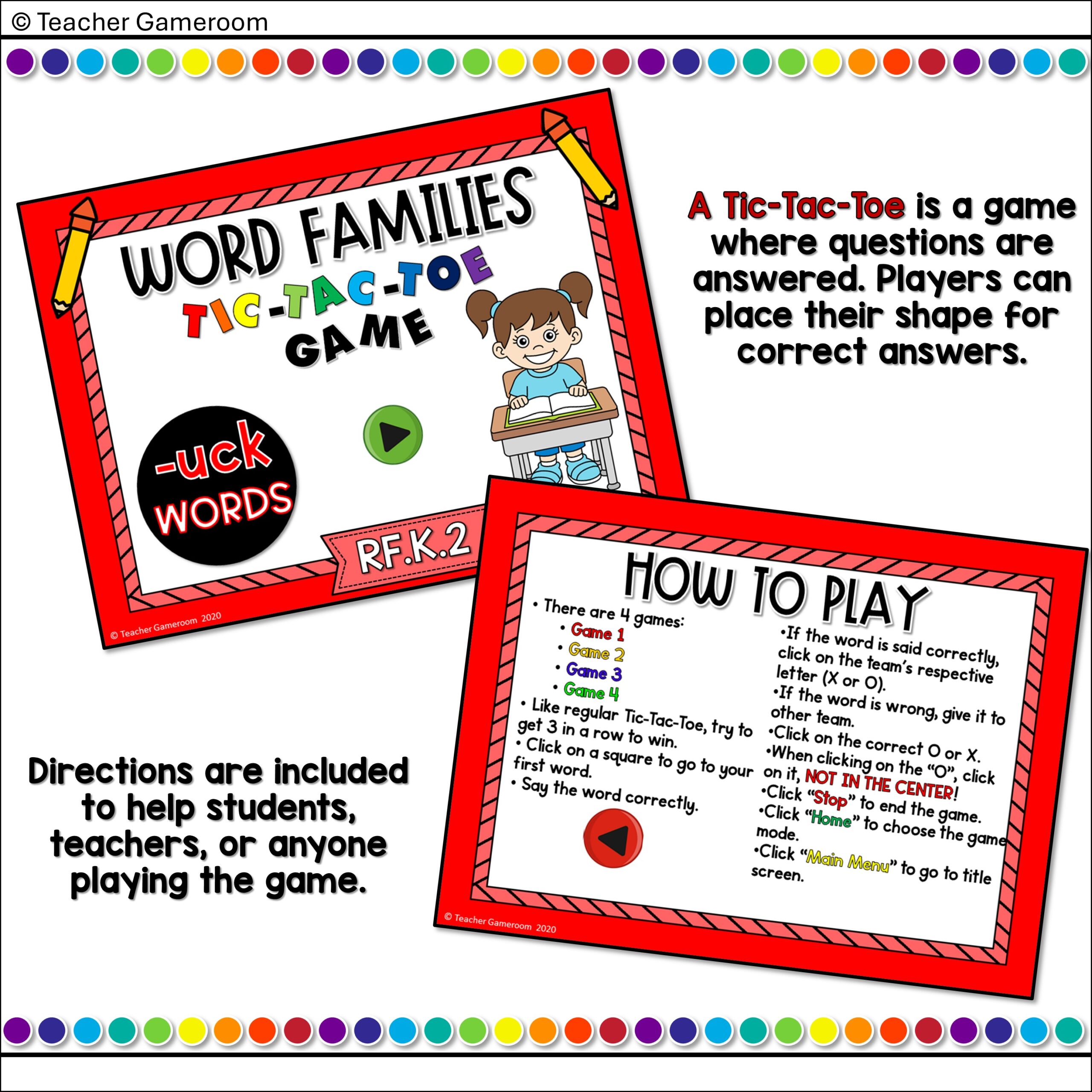 Word Families -uck Words Tic-Tac-Toe Powerpoint Game