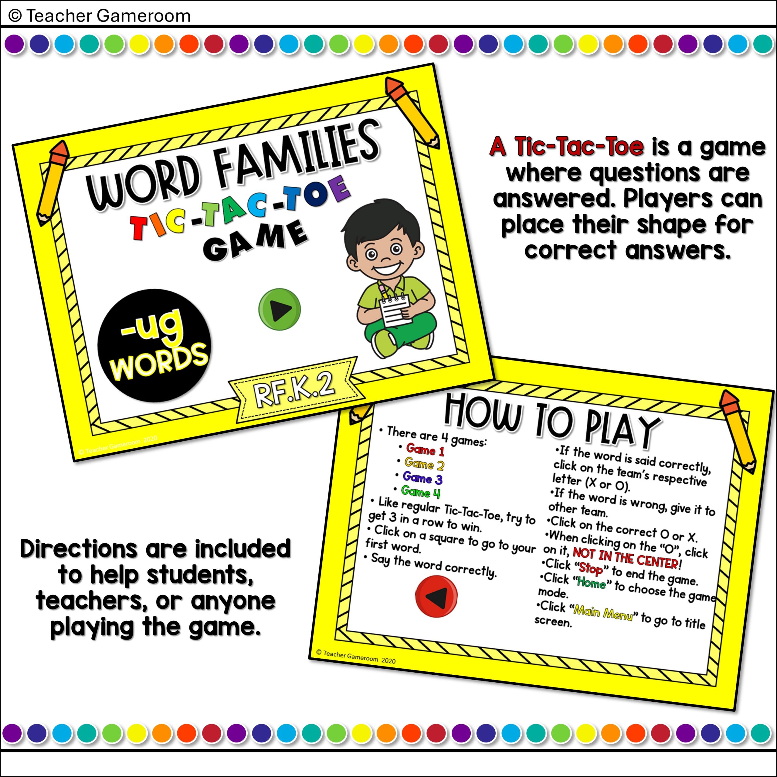 Word Families -ug Words Tic-Tac-Toe Powerpoint Game