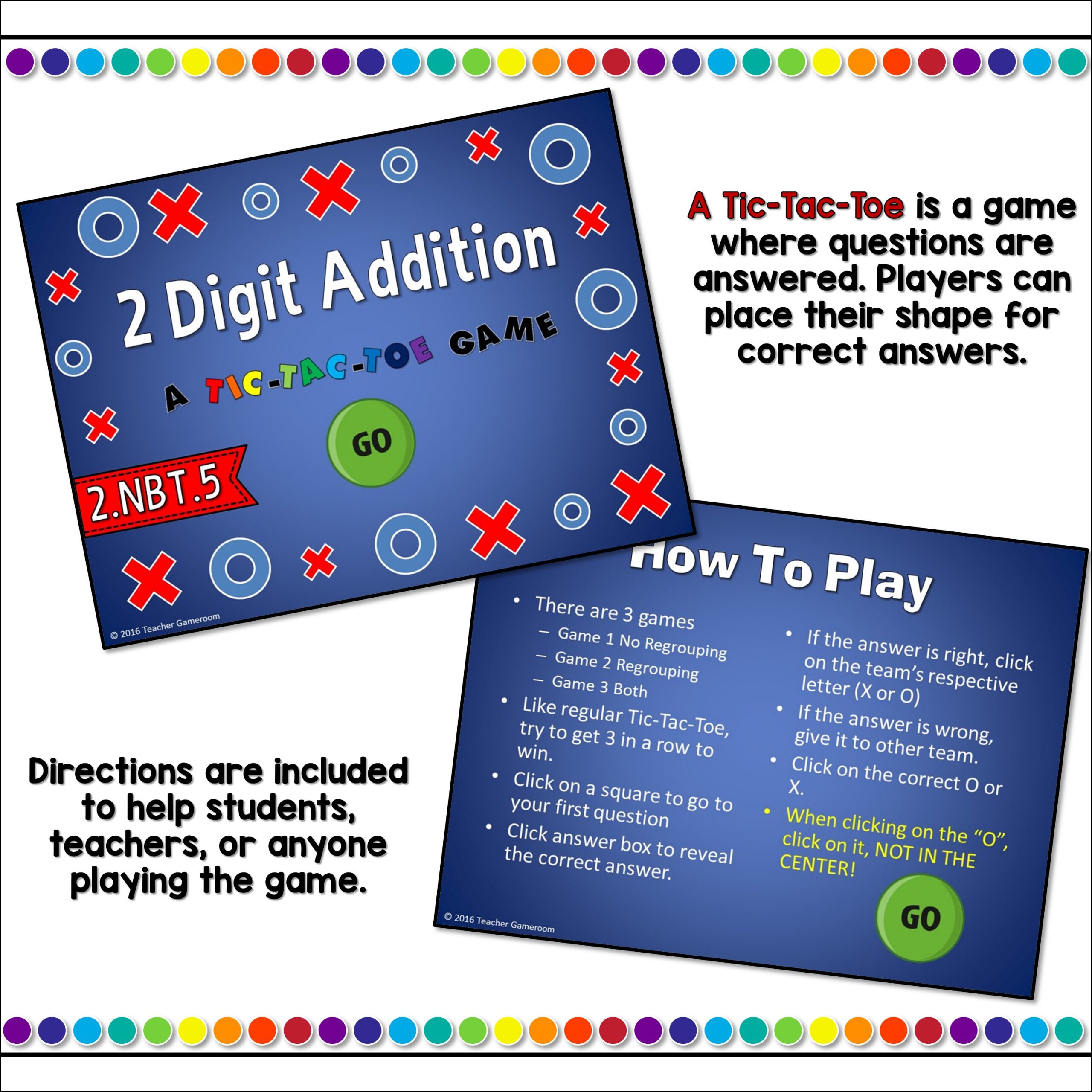 2 Digit Addition Game | Adding with Regrouping Activity | Tic-Tac-Toe | 2.NBT.5