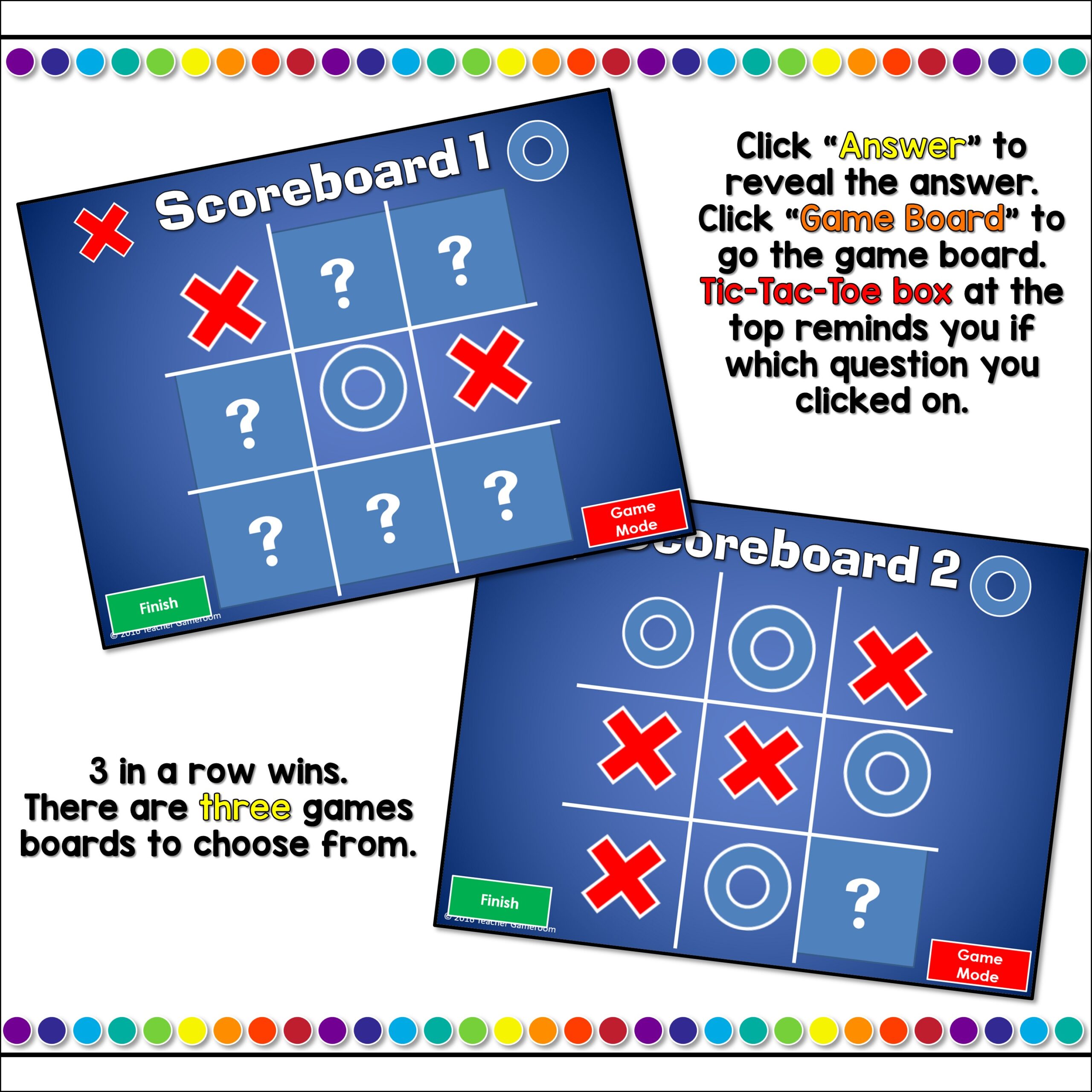 Students must answer area and perimeter questions correctly in order to place their “x” or “o”.