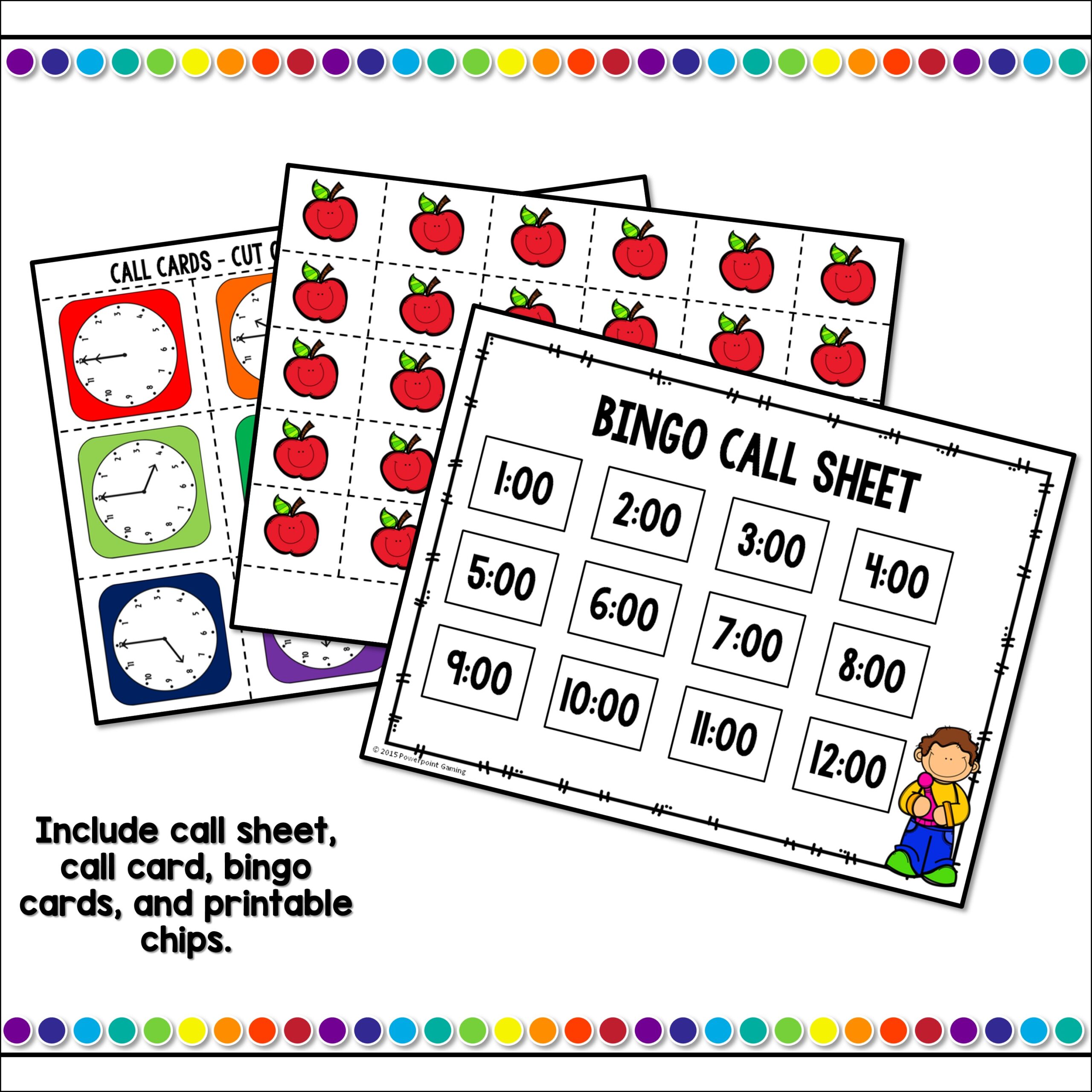 Students tell time to the hour and mark it off on their bingo cards. There are 30 bingo cards to choose from and includes a blank set of cards.